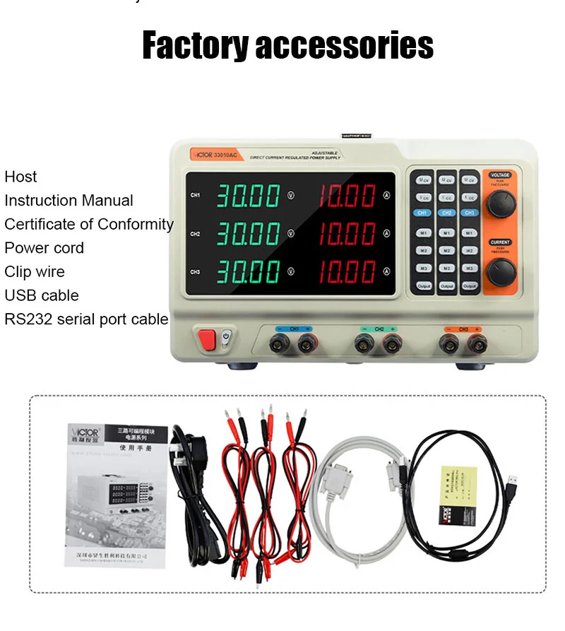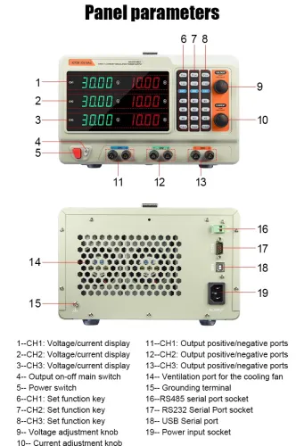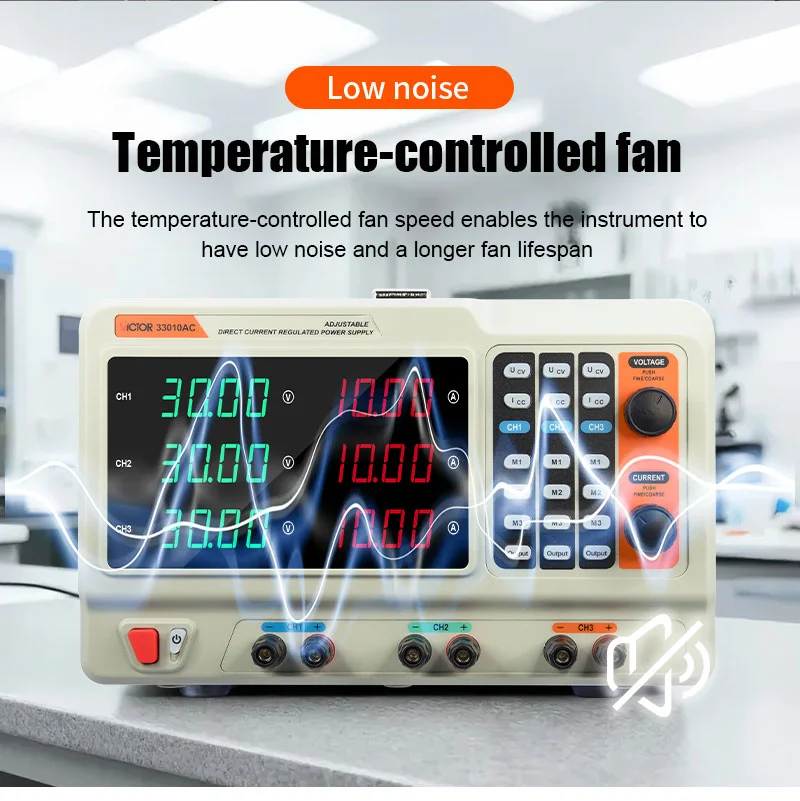 High resolution and accuracy – Voltage setting resolution: 10mV; Current resolution: 1mA (<10A) / 10mA (≥10A); Voltage accuracy: ≤0.1%+5 digits; Current accuracy: ≤0.2%+10 digits